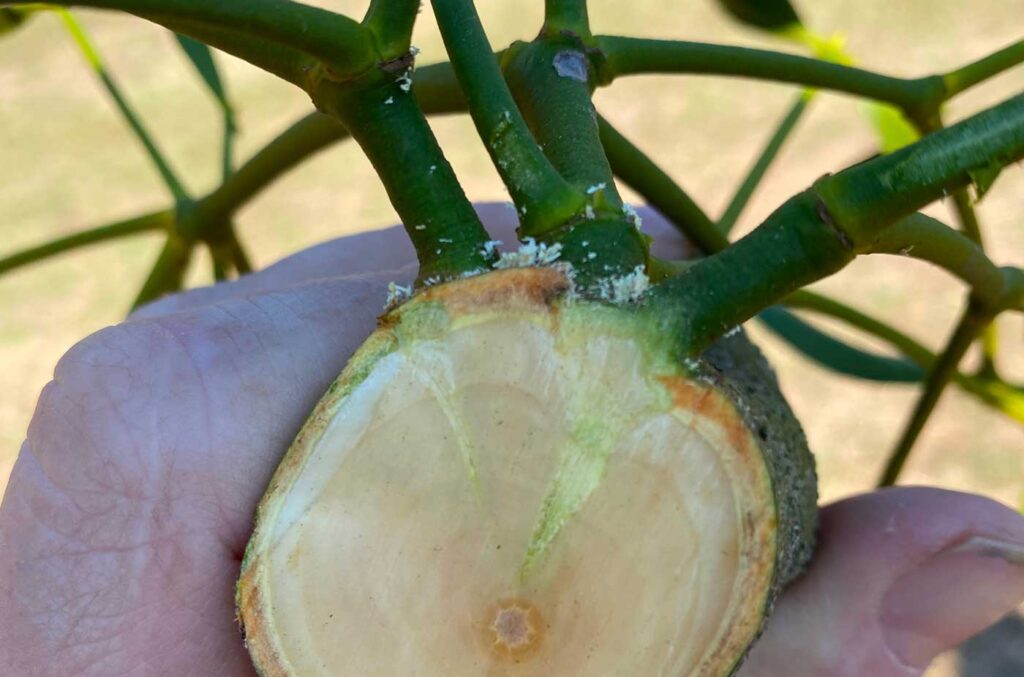 In Fällen, in denen die Mistel tief in den Baum wächst und ein tiefes Zurückschneiden nicht möglich ist, kann es helfen, die Mistel oberflächlich abzutrennen. Dies ist jedoch nur eine temporäre Lösung, da die Mistel in der Regel nach wenigen Jahren, oft nach etwa vier Jahren, wieder austreibt. Ein regelmäßiger Rückschnitt und eine Beobachtung des Baumes sind notwendig, um einen erneuten Befall frühzeitig zu erkennen und entsprechend zu handeln.